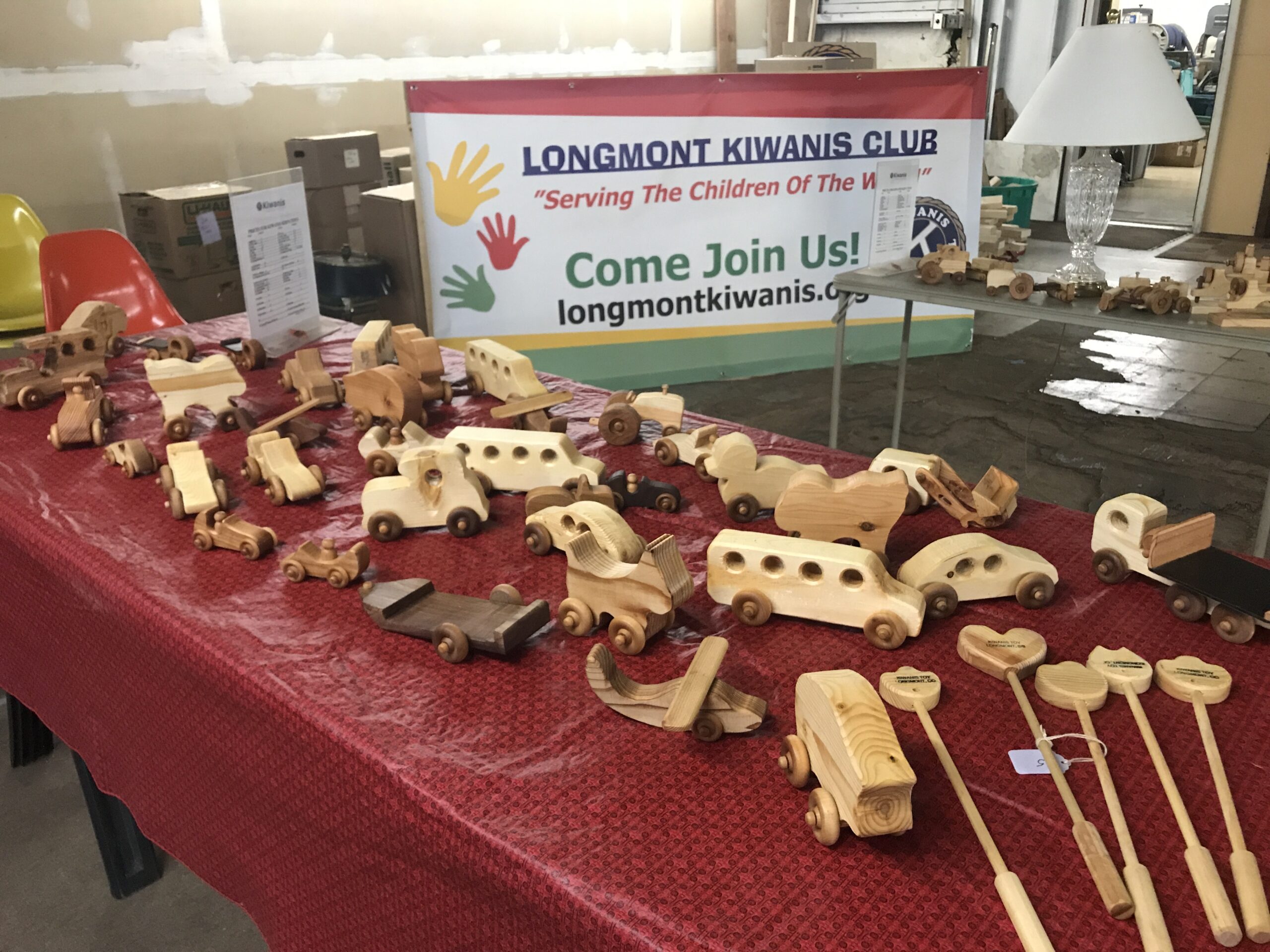 Kiwanis of Longmont has delivered over 200,000 handmade wooden toys to local, state and county agencies and organizations serving children in need. Some toys also reach children in other states and foreign countries. Each toy is handmade by Kiwanis members who meet daily and weekly to โmanufactureโ the toys in what we fondly call the TOY FACTORY. The toys are made from donated repurposed wood from local contractors and a local furniture manufacturer which might be other wise discarded. The project started fourteen years ago as a way to bring our club members together for one very special project. We found many members had woodworking equipment as well as a love for creating items with wood. We began in a garage and now our factory has expanded to a large fully equipped shop. Each year approximately 10,000 toys are delivered to children. Outside volunteers such as woodcrafters, Scouting and school children of all ages pitch in to work in our factory to complete the toys for delivery by Christmas and Holiday distribution. For more information about this project contact: Marv Van Peursem, Supervisor Extraordinaire at his email: [email protected]
